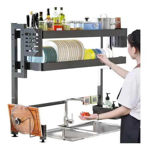 Escurridor de Platos de 2 Niveles para Lavabo Doble 95cm Super Espacioso