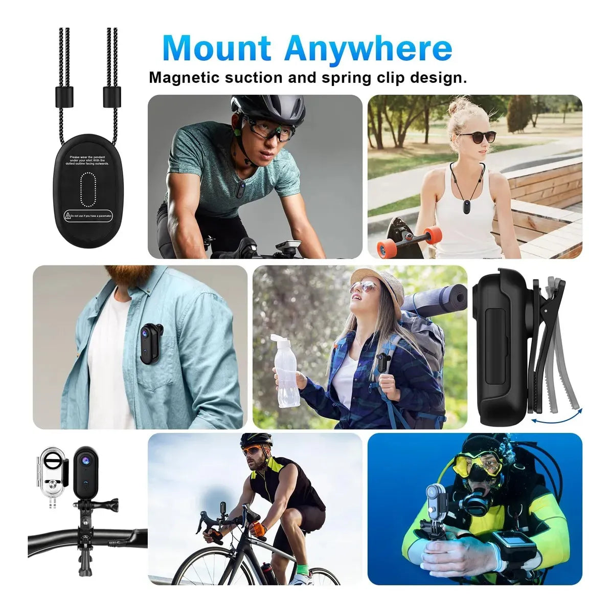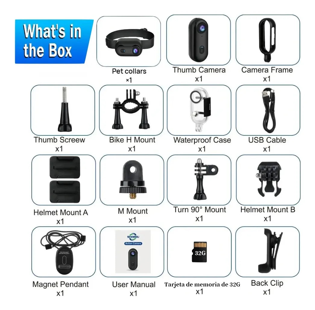 - ✅ **Versatilidad de Montaje**: Su diseño magnético y los siete accesorios incluidos te permiten fijarla en cualquier lugar, desde tu pecho hasta tu bicicleta, para grabar en cualquier situación.