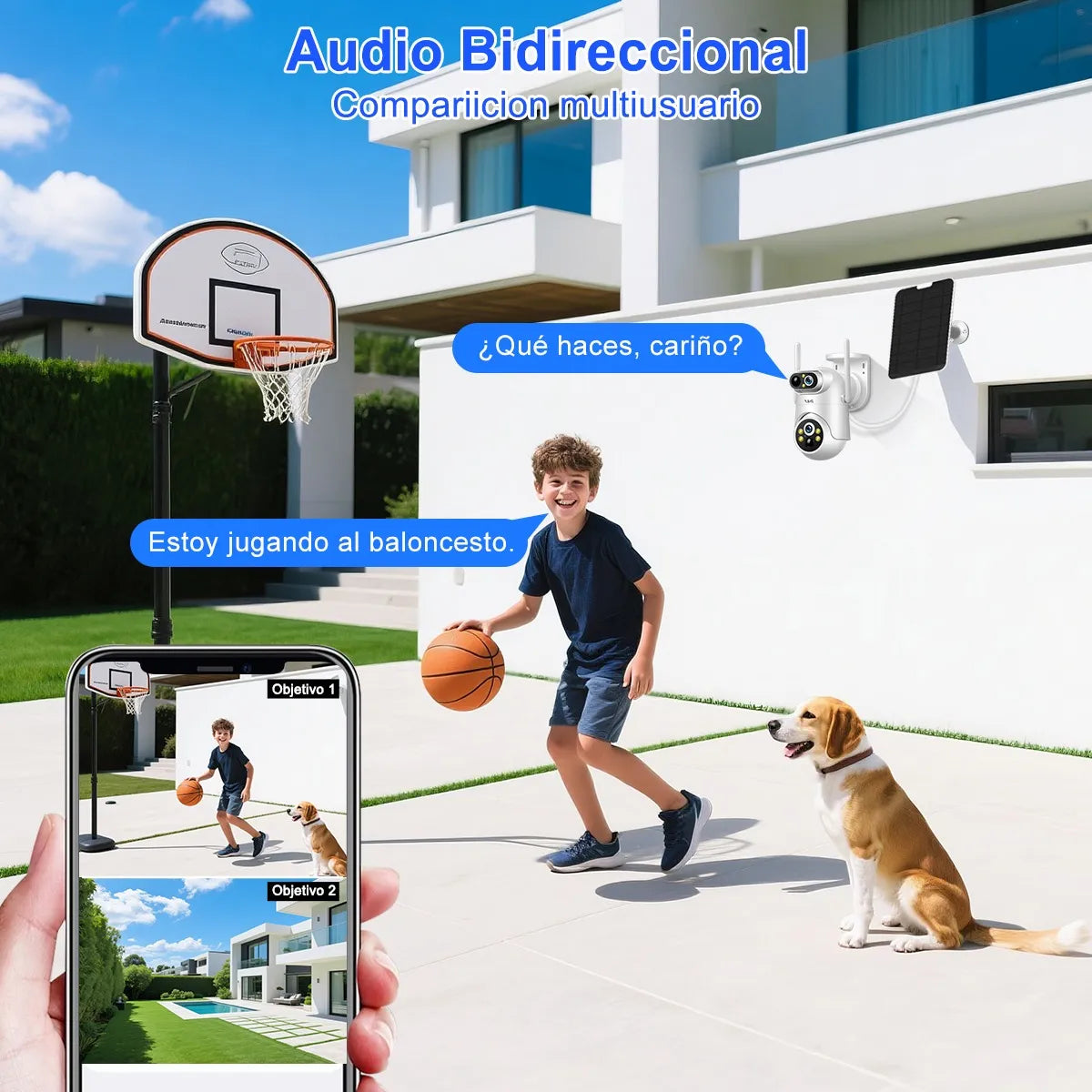 Cámara de Seguridad Solar 12MP con Doble Lente y Pantalla 5G