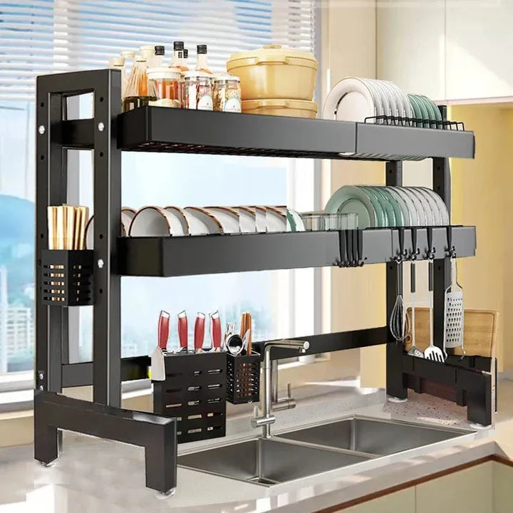 Escurridor de Trastes Ajustable sobre Fregadero - Organizador de Platos Negro