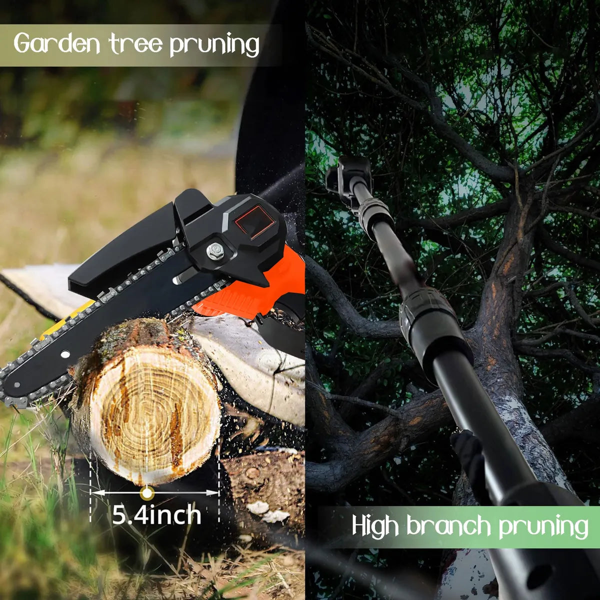 ¿Cansado de luchar con herramientas pesadas para podar o cortar? Esta motosierra eléctrica inalámbrica con pértiga telescópica te da la libertad de alcanzar y cortar con facilidad, mientras su lubricación automática y freno de seguridad cuidan de ti en cada movimiento.